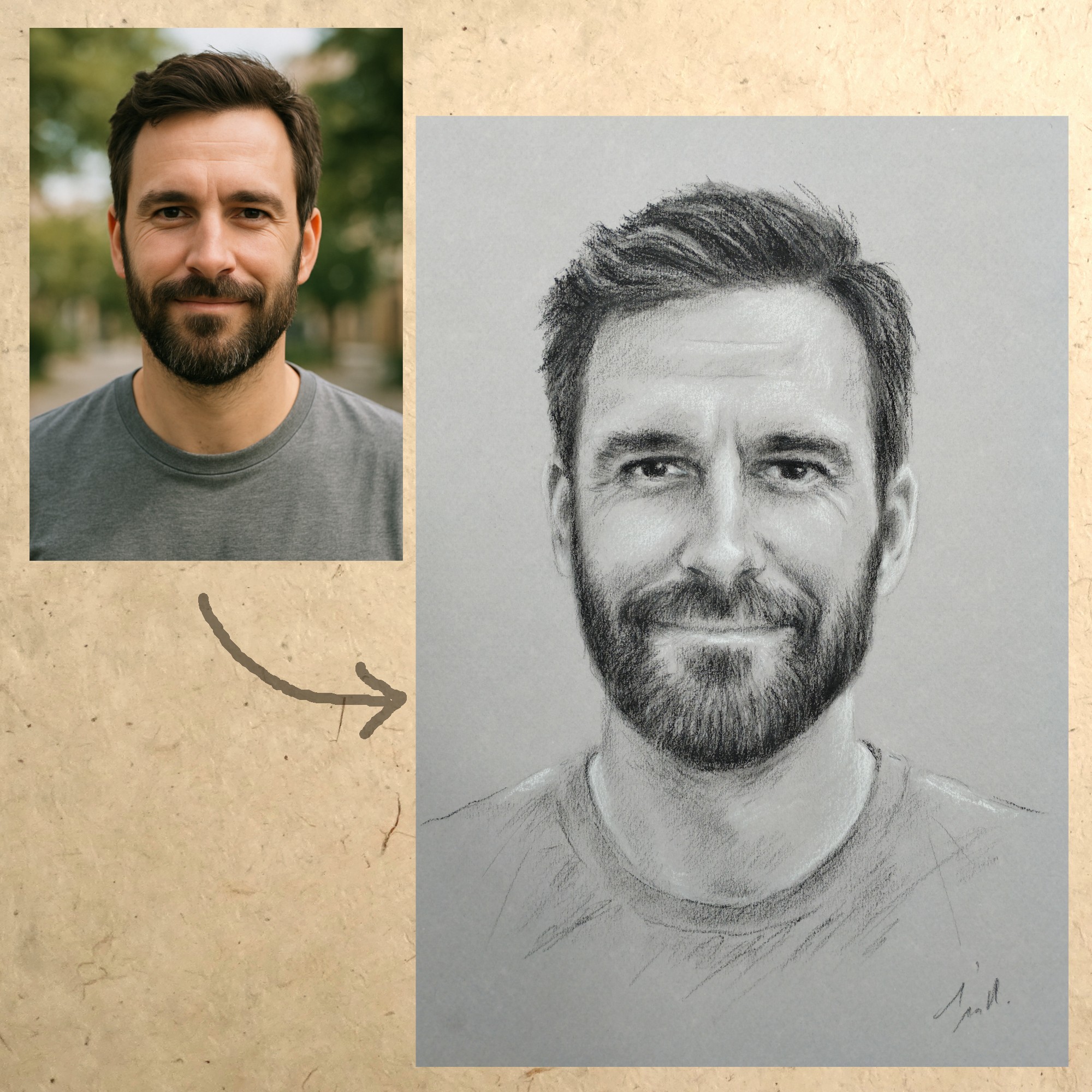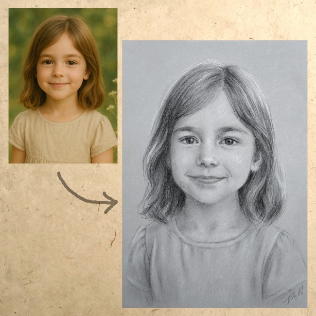 Vous me joignez la ou les photos par mail à isabellemillozart@gmail.com, et vous commandez le portrait via ce site, en choisissant la technique, le format et nombre de visages.
