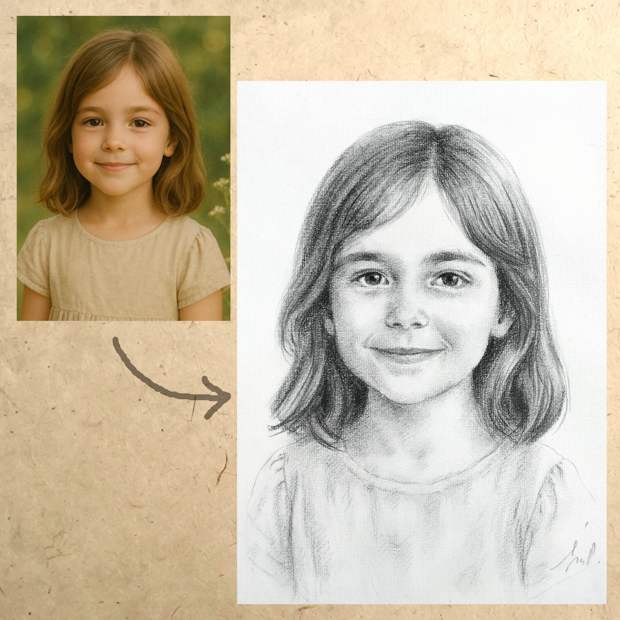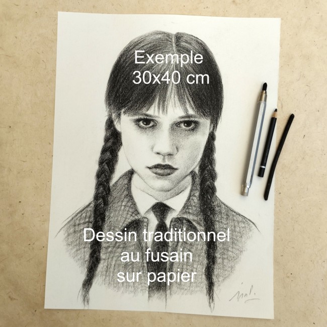 Vous me joignez la ou les photos par mail à isabellemillozart@gmail.com, et vous commandez le portrait via ce site, en choisissant la technique, le format et nombre de visages.